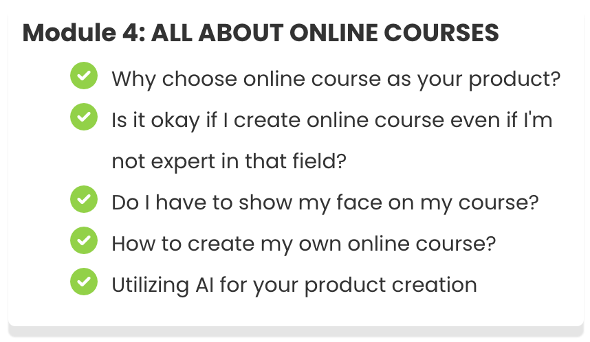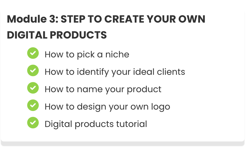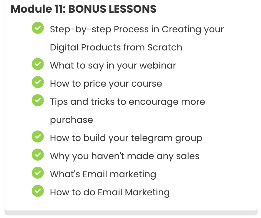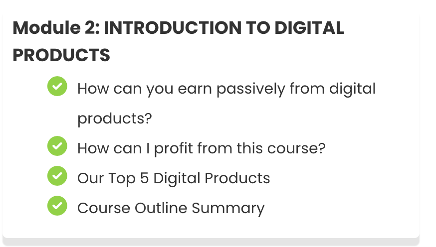 This is also one way if you want to earn. The course will teach you everything from scratch, especially creating digital products. After completing the course you were able to identify what you want. If you want to create/start your own products - you can. If you are camera-shy to make your own videos, you can resell the course resell other digital products. You can create youw own and set price depending on your efforts when creating it.